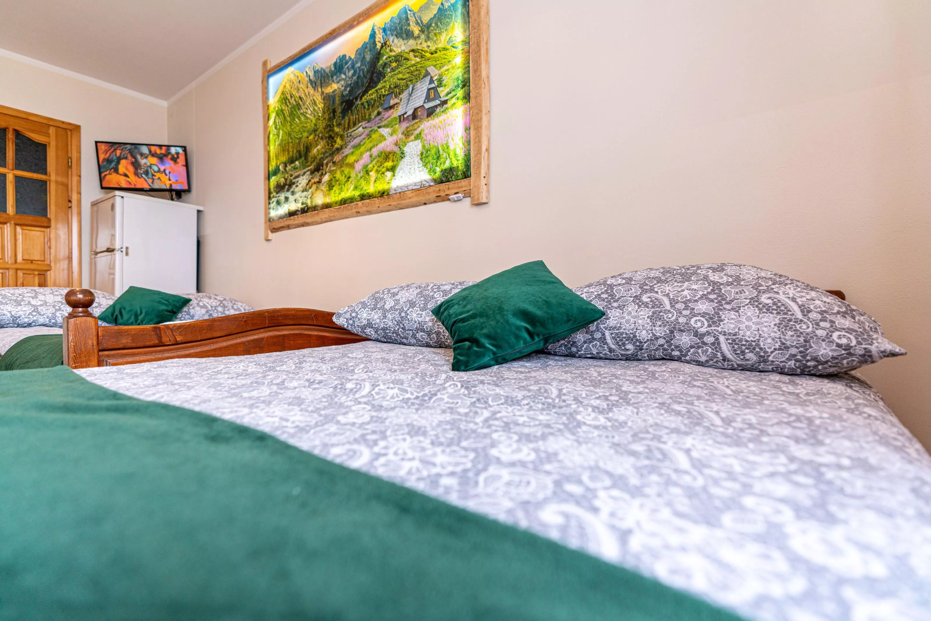 Pokój 4-osobowy z prywatną łazienką. Dwa łózka małżeńskie.